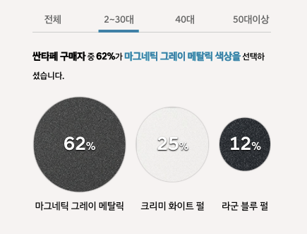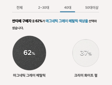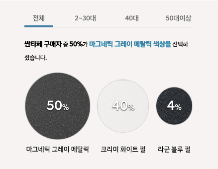 구매자의 절반이 선택한 싼타페 색상은 바로 그레이입니다.