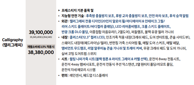 2021 신형 더뉴 싼타페 가격표 캘리그래피 - 3838만원