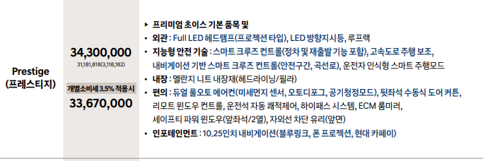2021 신형 더뉴 싼타페 가격표 프레스티지 - 3367만원