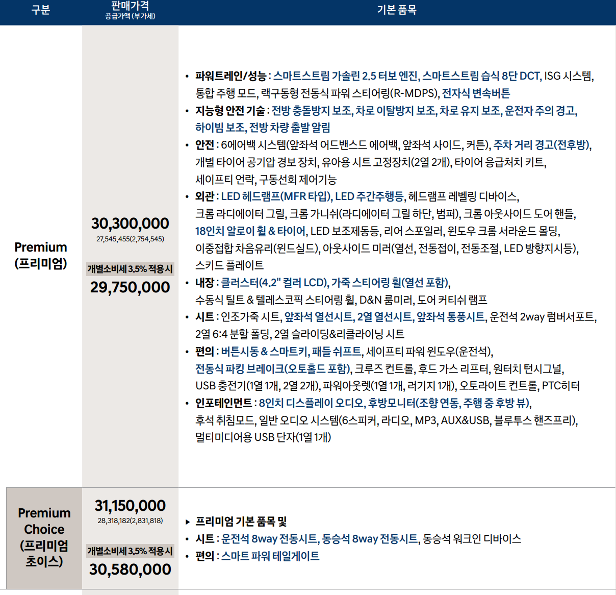각 트림별 가격에 대해서 먼저 알아볼께요.