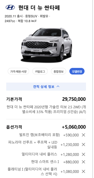 - 더 뉴 싼타페 프리미엄 2,975만원