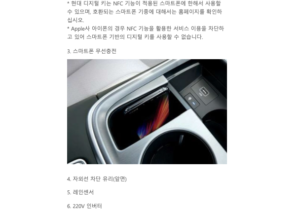 헤드업 디스플레이, 디지털키, 무선충전, 자외선 차단 유리, 레인센서, 220v 컨버터가 들어있습니다.