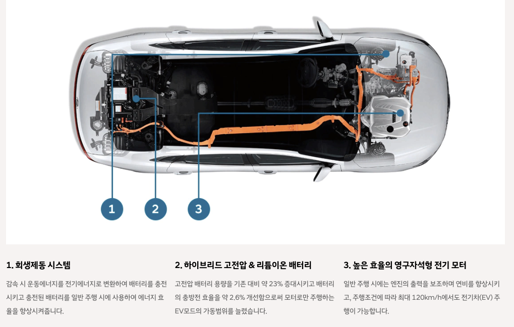 단순 연비만 비교했을때도 준중형 아반떼의 연비가 15.4km/l인데, 그보다 체급이 큰 그래저 하이브리드가 이정도 나와준다면 무척 괜찮은 연비죠.