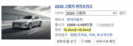 이런 조건에 맞는 것은 그랜저 하이브리드가 아닐까 생각되네요.