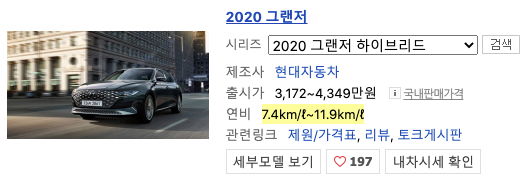 단순 연비만 비교했을때도 준중형 아반떼의 연비가 15.4km/l인데, 그보다 체급이 큰 그래저 하이브리드가 이정도 나와준다면 무척 괜찮은 연비죠.