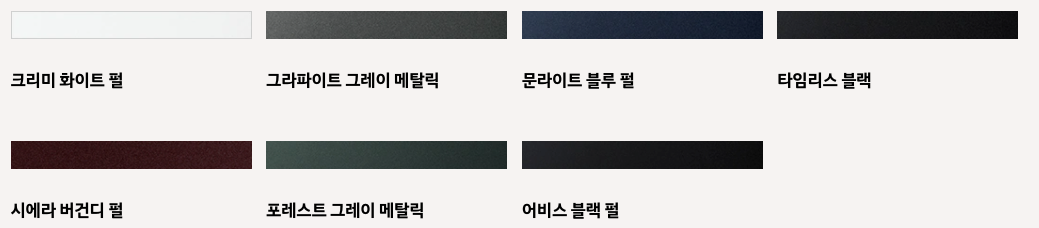 내장재 고를때 왠지 모를 불편함이 느껴지는데요. 등급에 따라 고를 수 있는 색상이 정해져있더라구요.