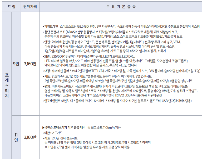 2021 카니발 11인승 프레스티지 3160만원