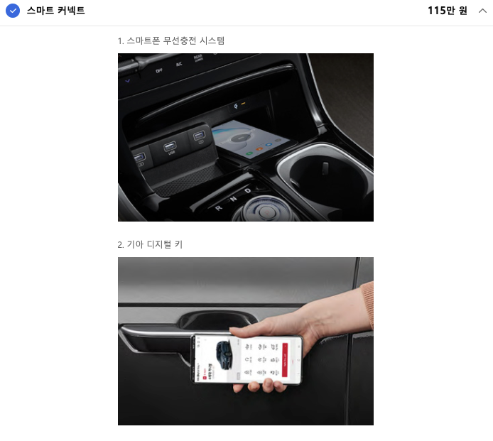 이 기능은 편의기능을 모아놓은 패키지인데, 구지 없어도 괜찮은 부분이고, 무선충전, 보조배터리 등의 옵션은 추후 사제로도 달 수 있는 옵션입니다. 요건 다른 옵션에 비해 가격대비 만족도가 떨어질 것 같아요.
