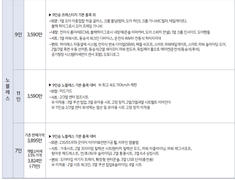 카니발 7인승/9인승/11인승 가격표