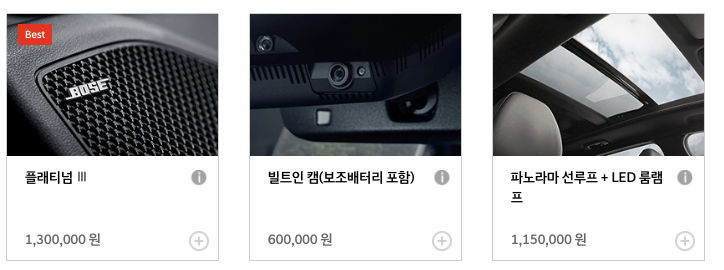 - 플래티넘1 : 후측방 모니터, 서라운드 뷰