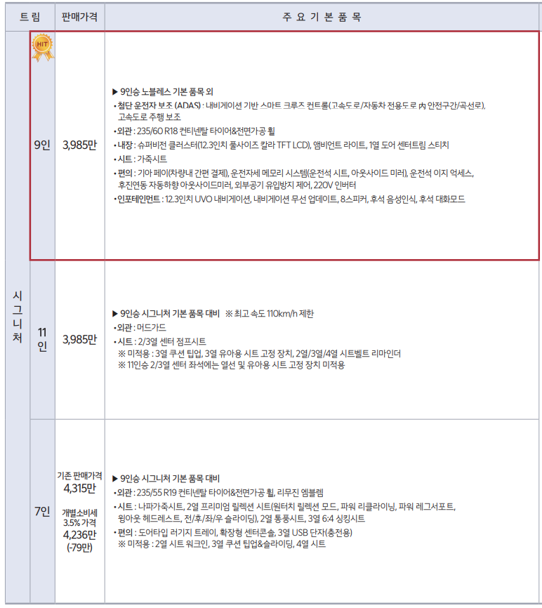 오늘은 기아 카니발의 신차 가격표와 옵션들에 대해서 자세히 설명드리겠습니다.