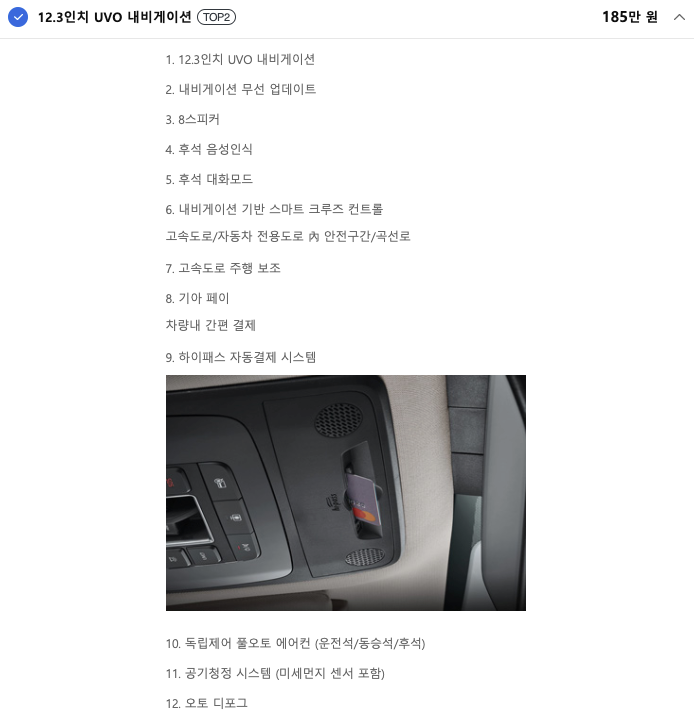 이 기능은 편의기능을 모아놓은 패키지인데, 구지 없어도 괜찮은 부분이고, 무선충전, 보조배터리 등의 옵션은 추후 사제로도 달 수 있는 옵션입니다. 요건 다른 옵션에 비해 가격대비 만족도가 떨어질 것 같아요.