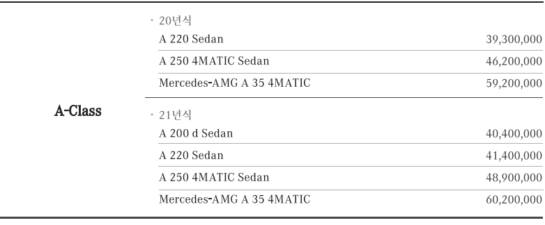 크기만 생각하면 작을 수 있지만 벤츠 엔트리 단계로 입문하기에 저렴한 4000만대 가격이 특징입니다.