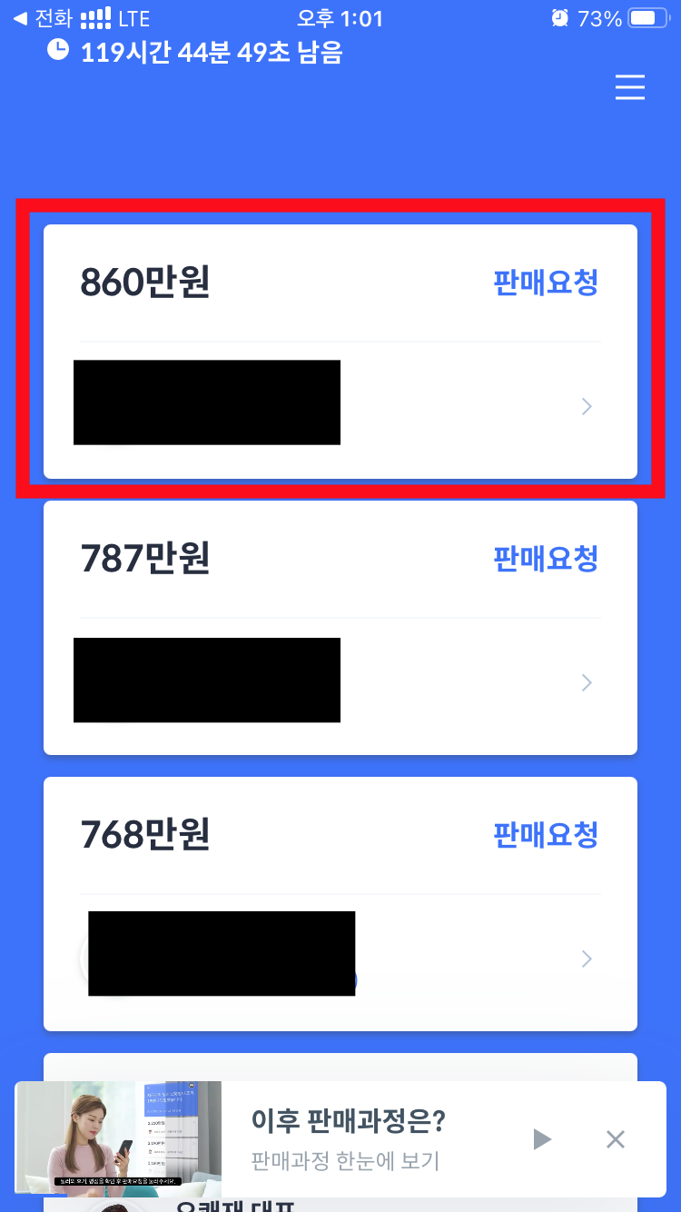 그러자 잠시 후 다른 분이 860만원에 입찰했어요.