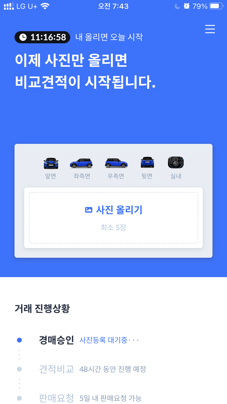 딜러가 와서 궁금해하는 부분을 제가 체크하고, 다양한 각도에서 사진 찍어 올리면 되니 편했어요.