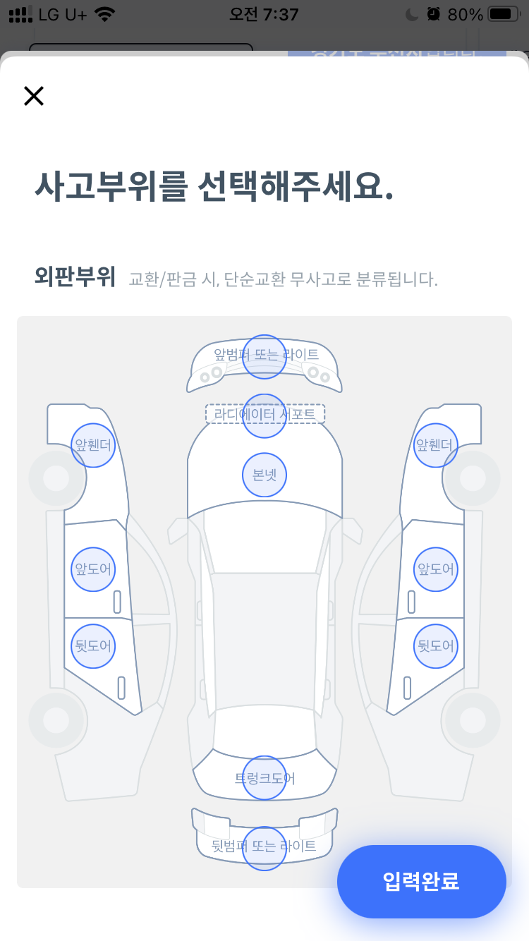 2. 이를 바탕으로 헤이딜러에 사고부위를 포함하여 정확한 정보를 입력