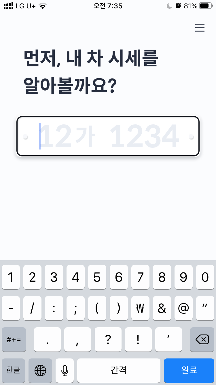 제일 처음에는 차량번호 입력부터 시작합니다.