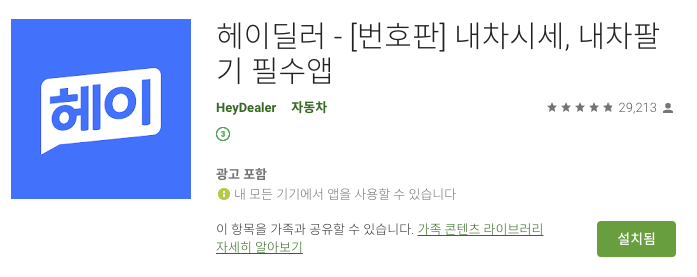 익숙한 이름인 헤이딜러를 검색해서 이 앱을 설치했습니다.