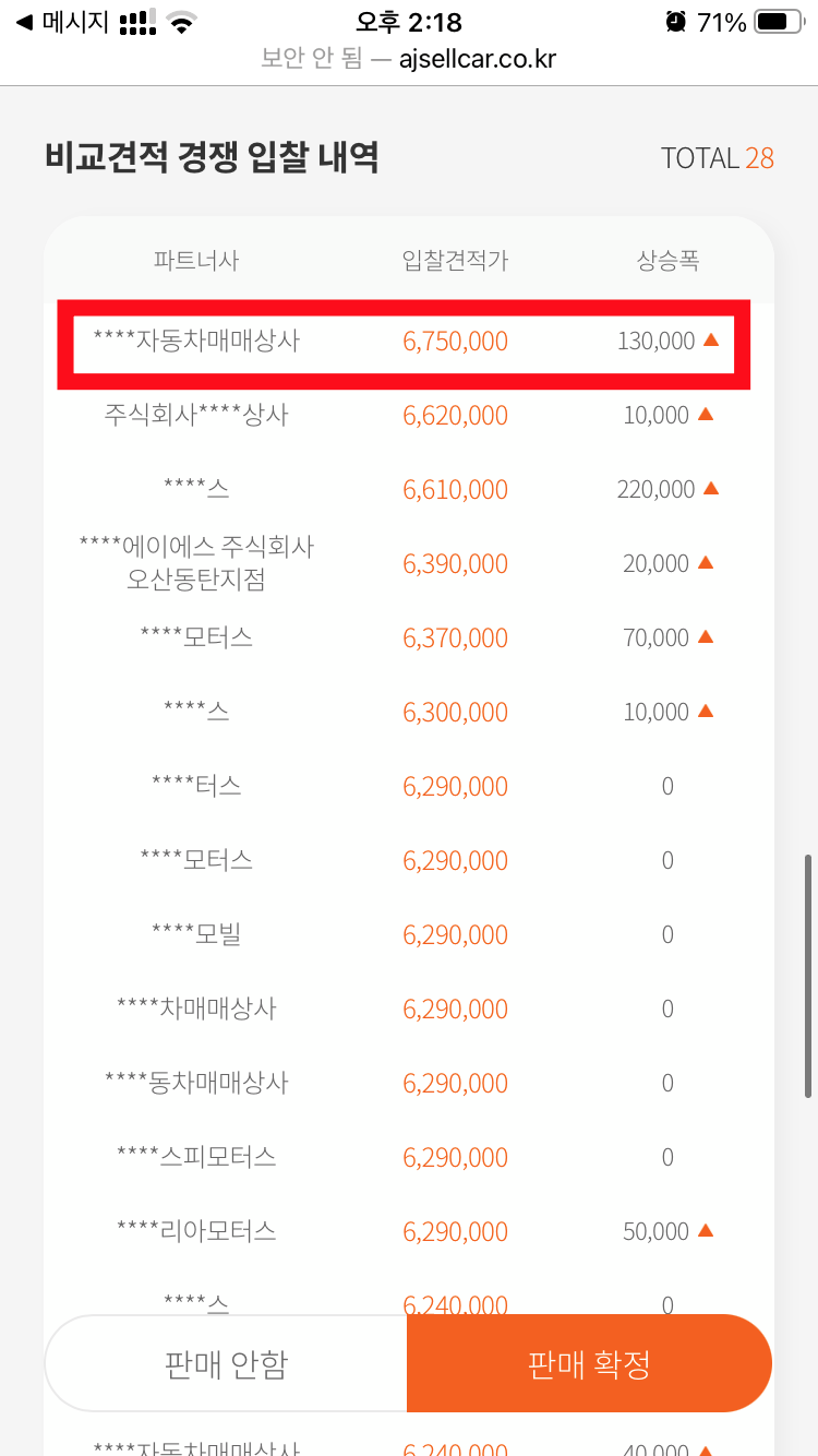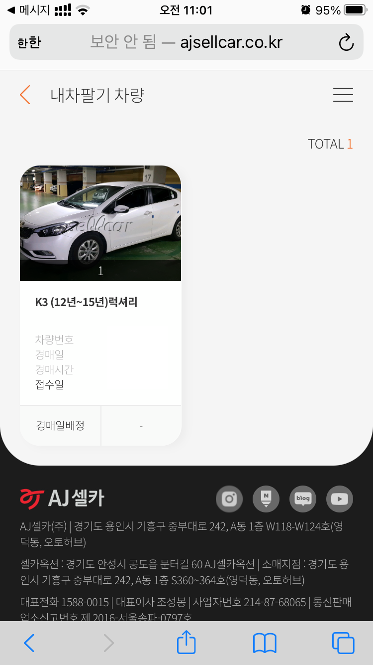 문자에 포함된 AJ셀카 사이트 주소로 들어가면 입찰현황이 쭉 나오는데,