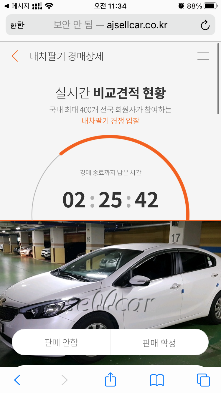 성능검토 이후 내 차량은 다음날 9시~11시 사이에 경매가 시작됩니다.