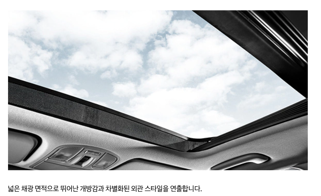선루프 옵션인데, 요즘은 큰 개방감을 주기 위해 파노라마 선루프로 나오고 있습니다.