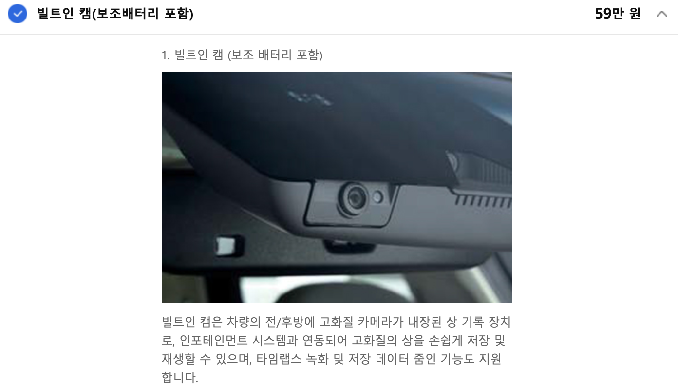 한 번 차량을 사게되면 오래 타실텐데, 업그레이드 되지 않는 빌트인 캠은 조금 아쉽네요.