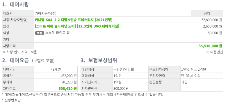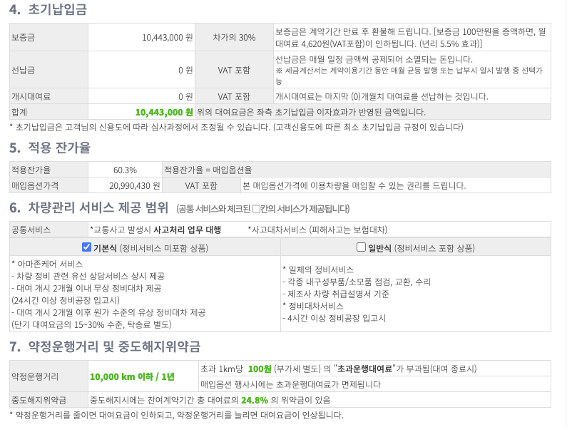 인수하지 않고 48개월간 사용하고 반납하실 분들에게는 가장 좋은 선택인것 같습니다.