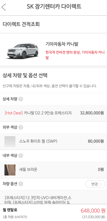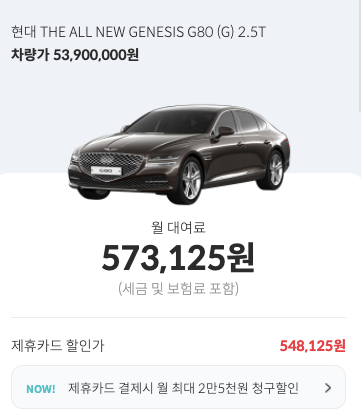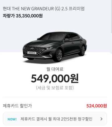 - 롯데 장기렌터카 : 548,125원(제휴사 카드로 결제시)