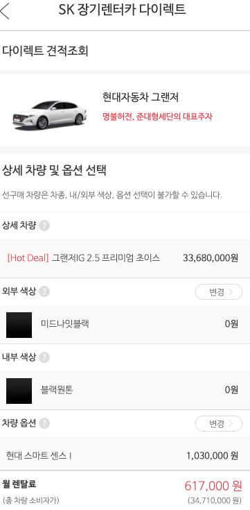 - SK장기렌터카 : 617,000원