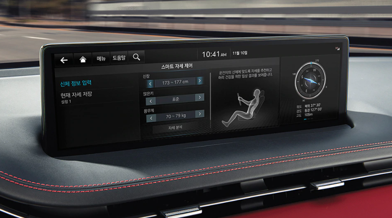 • 인포테인먼트 : 제네시스 인포테인먼트 시스템(14.5인치 디스플레이, Genesis Connected Services, 폰 프로젝션, 도로파손/미끄럼 지역 알림, 블루투스 멀티커넥션, 제네시스 카페이, 발레모드, 뮤직 스트리밍 서비스), 내비게이션 자동 무선 업데이트, 9스피커, 앞좌석 & 뒷좌석 USB 단자