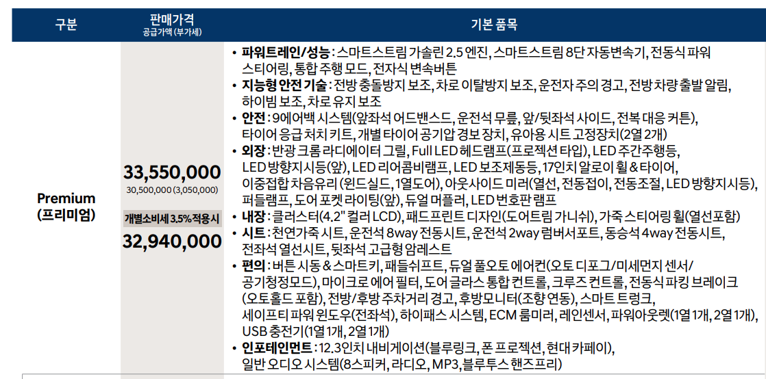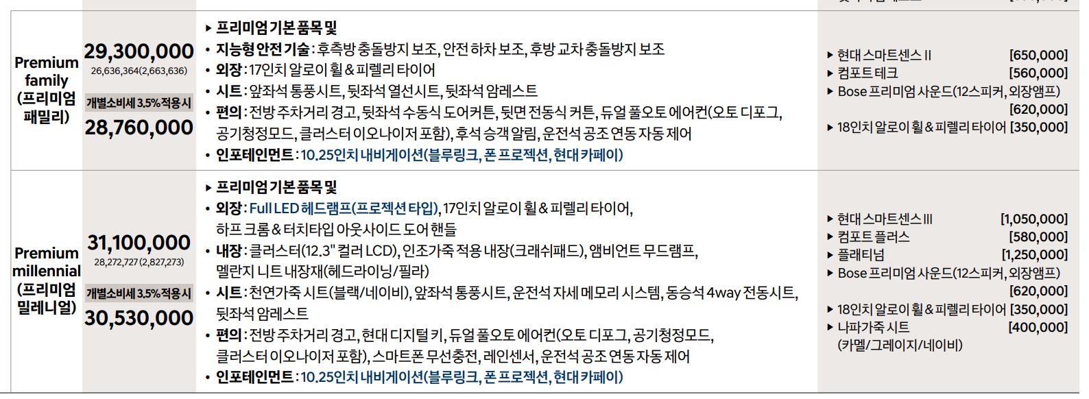 3) 그랜저 프리미엄(이럴바엔 쏘나타 대신 그랜저로 가?)