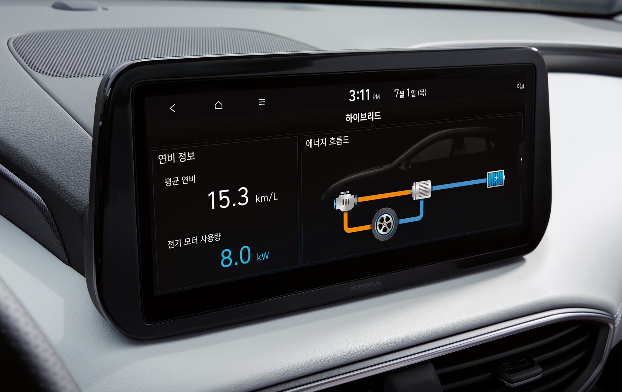 기존 싼타페에는 프리미엄 등급에 옵션이었던 내비게이션 패키지(128만 원)가 싼타페 하이브리드에는 기본 사양에 탑재되었습니다.