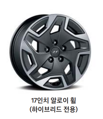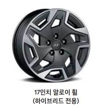 하이브리드 모델 특성상 연비를 강조해야 하는데, 휠이 커지면 접지력은 좋지만 연비 측면에서 안 좋은 영향이 있기에 이를 고려한 것으로 보입니다.