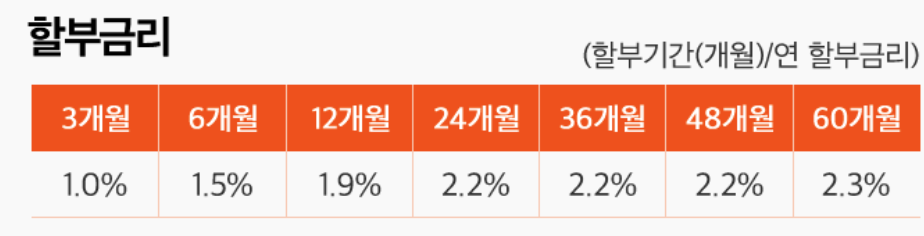 - 할부기간 : 3~60개월
