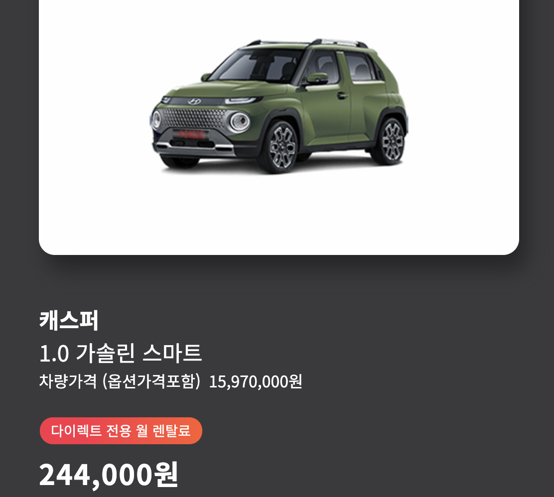 비용부담 없이 빠르게 캐스퍼를 만나본다면 같이 고려해보시면 좋을 것 같습니다.